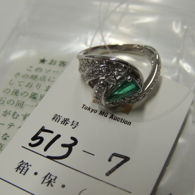 リング エメラルド ダイヤ Pt900 10.00g 中ソ 石目:E0.51 0.64