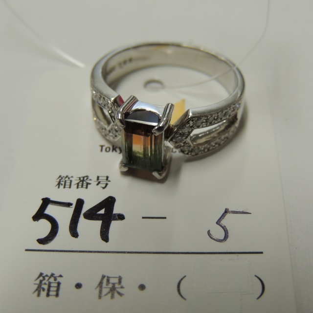 リング パーティカラードトルマリン Pt900 8.20g 石目:TO1.55 D0.27