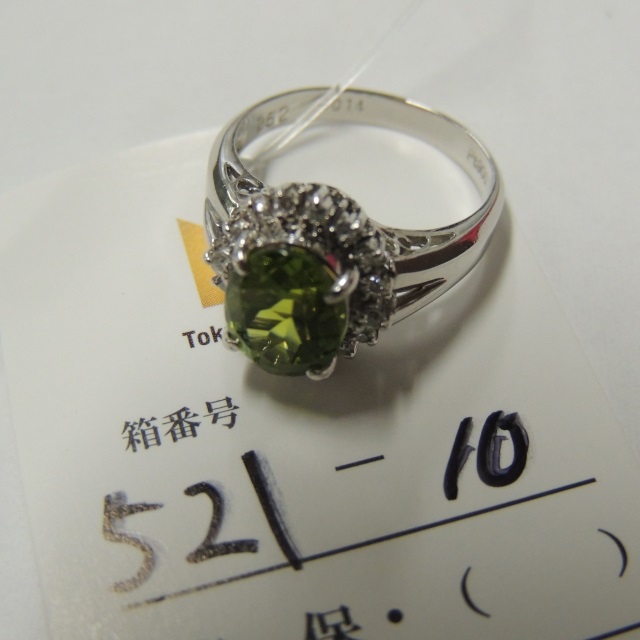 リング ペリドット Pt900 6.40g 鑑 石目:PE2.52 D0.14