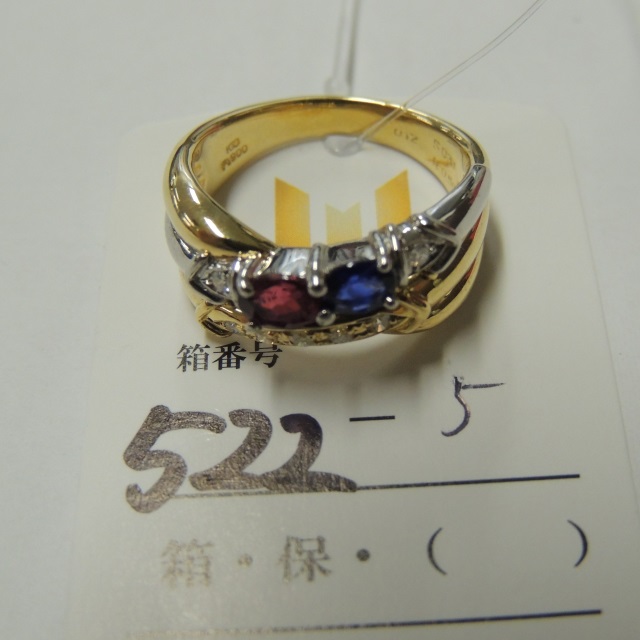 リング ルビー サファイア ダイヤ K18/Pt900 8.40g 石目:0.31 0.5 0.12