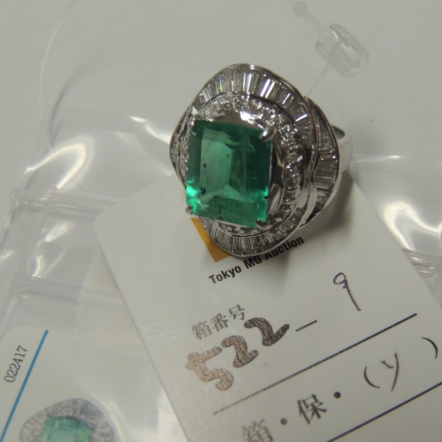 リング エメラルド ダイヤ メレ取れ Pt900 19.00g GRJソ 石目:6.35 2.1