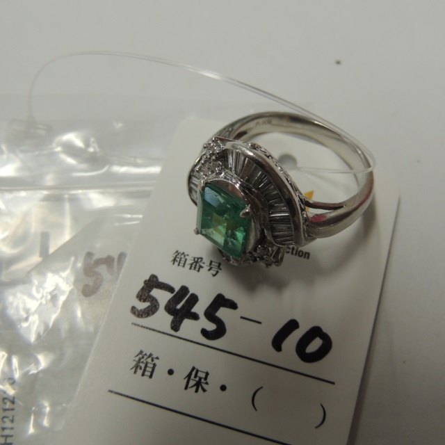 リング エメラルド ダイヤ Pt900 12.20g 中ソ 石目:2.96 1.00