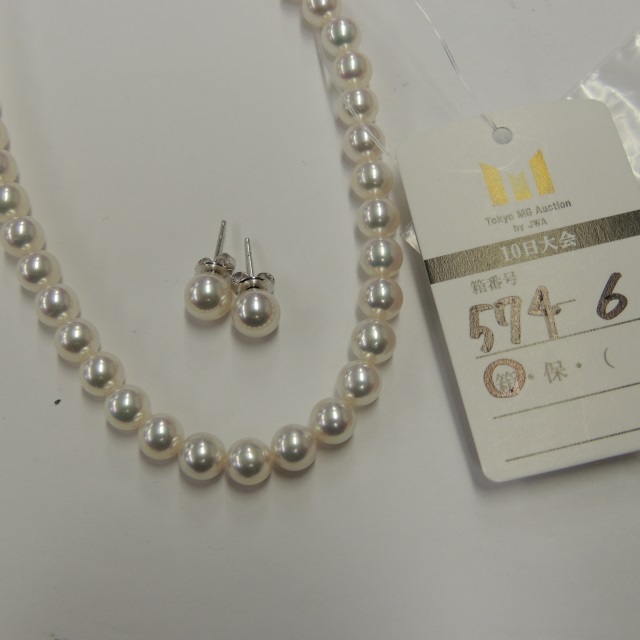 セット ネックレス・イヤリング 2点 パール 8.5-9.0mm SV/K14WG 49.80g 箱 鑑