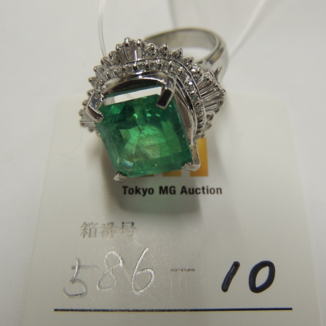 リング エメラルド ダイヤ Pt900 10.50g 中ソ 石目:15.15 0.50