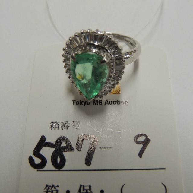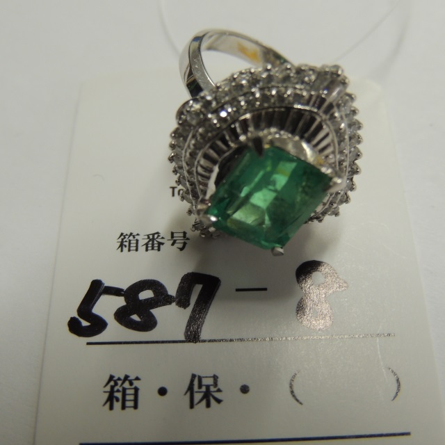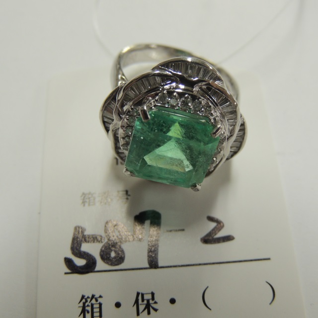 リング エメラルド ダイヤ Pt900 10.40g 中ソ 石目:2.23 2.43
