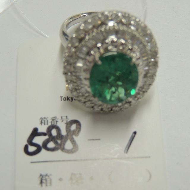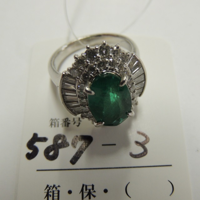 リング エメラルド ダイヤ Pt900 11.20g 中ソ 石目:2.71 D0.66