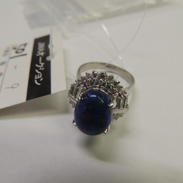 リング ブラックオパール ダイヤ Pt900 12.90g 中ソ 石目:5.45 1.37