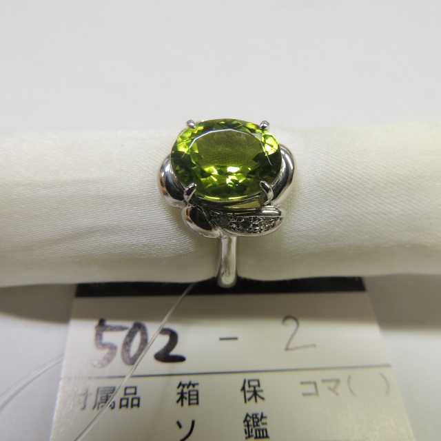 リング ペリドット ダイヤ Pt900 8.90g 石目:3.64 0.05