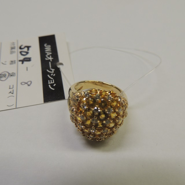 リング イエローサファイア ダイヤ K18 10.70g 鑑 石目:4.33 0.74