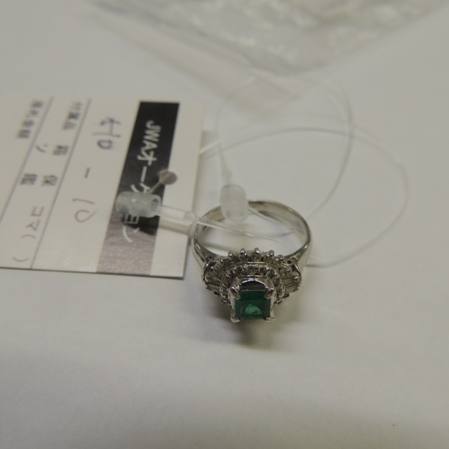 リング エメラルド ダイヤ Pt900 7.00g 石目:E0.27 D0.54