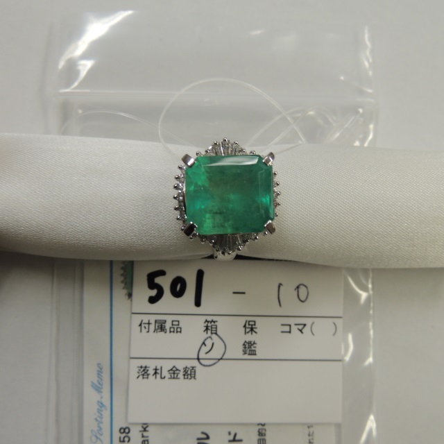 リング エメラルド ダイヤ PT900 9.70g GRJソ 石目:6.95 0.43