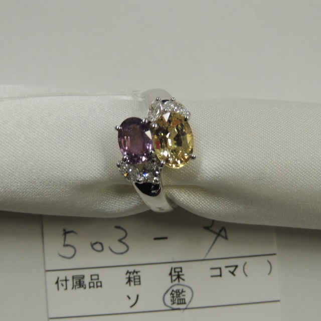 リング イエローサファイア パープルサファイア ダイヤ PT900 6.50g 中鑑 石目:2.79 0.39