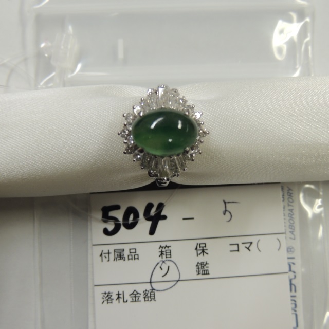 リング ヒスイ ダイヤ PT900 9.10g 中ソ 石目:3.27 0.86