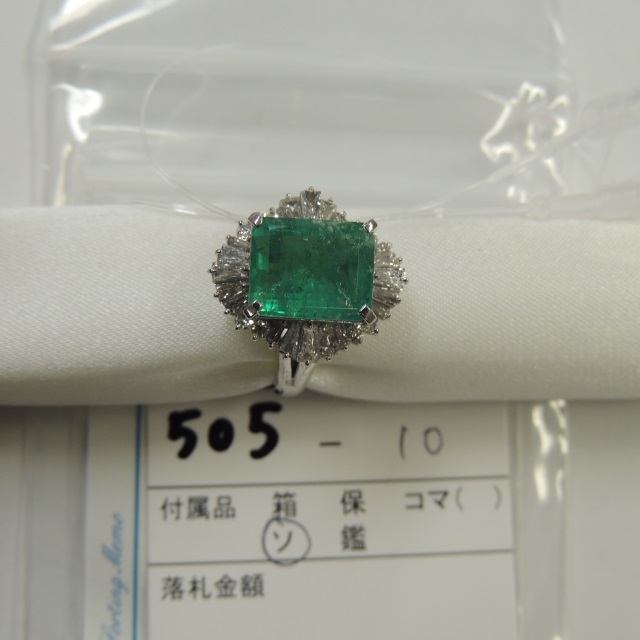 リング エメラルド ダイヤ PT900 9.30g GRJソ 石目:3.63 0.80