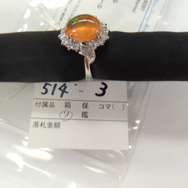 リング ファイアオパール ダイヤ Pt900 8.60g GRJソ 石目:3.43 D0.81