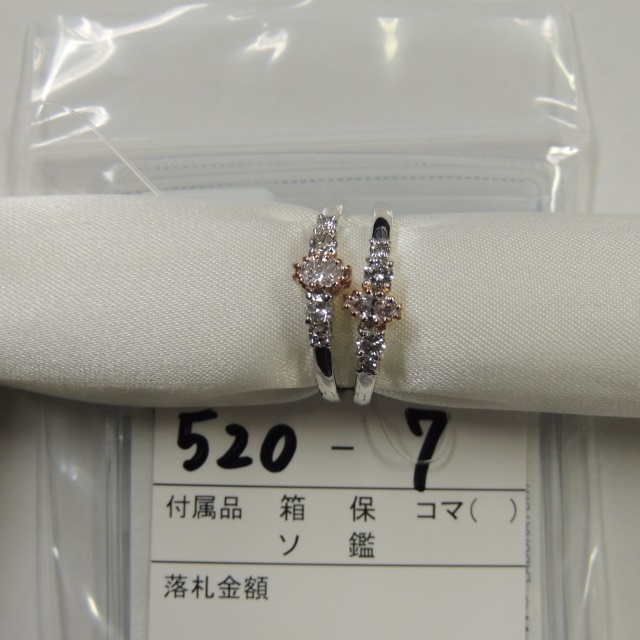 リング 2点セット ピンクダイヤ ダイヤ FP/VS2 VLP/VS1 K18/PT900 6.50g 中ソ2 石目:0.139 0.20 0.140 0.20