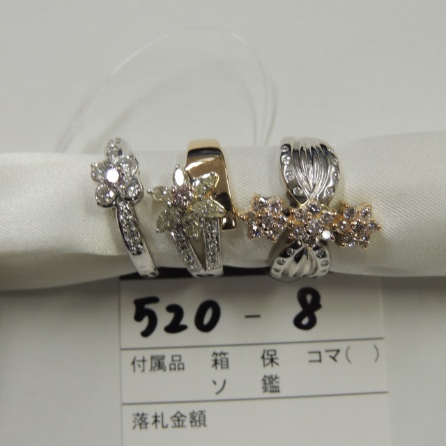 リング 3点セット ピンクダイヤ ダイヤ PT900/K18 19.40g 石目:0.05 0.37 0.08 0.56 0.60