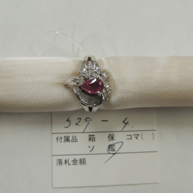 リング ピンクトルマリン ダイヤ Pt900 6.30g 鑑 石目:0.57 0.55