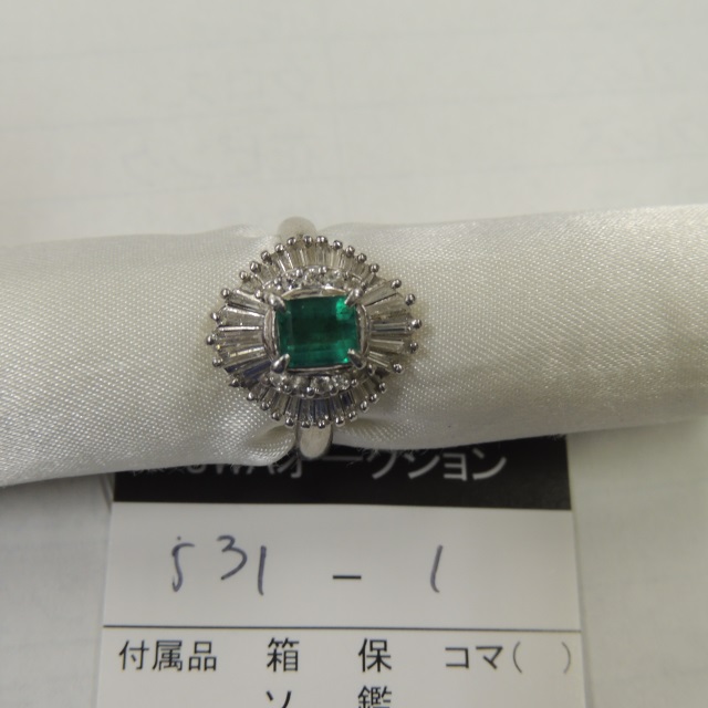 リング エメラルド ダイヤ Pt900 7.00g 石目:E0.71 D0.76