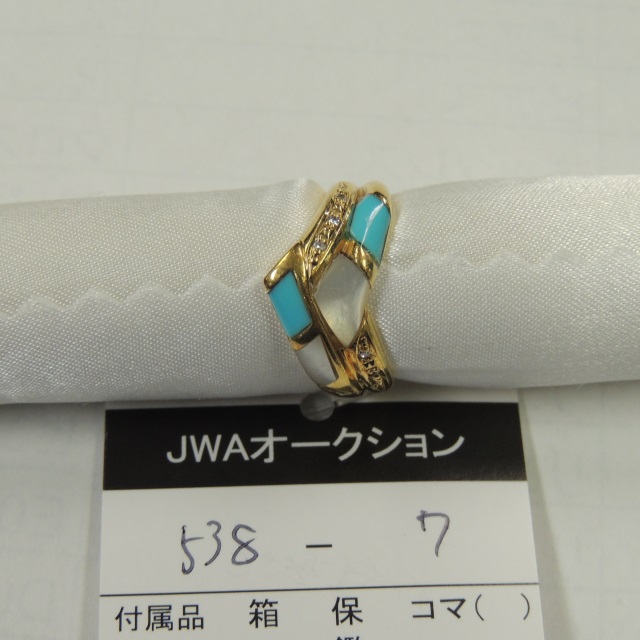 リング トルコ石 シェル ダイヤ K18 4.20g 石目:D0.03