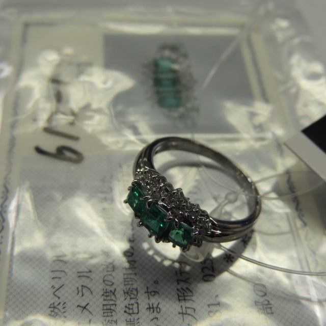 リング エメラルド ダイヤ Pt900 6.40g 石目:0.55