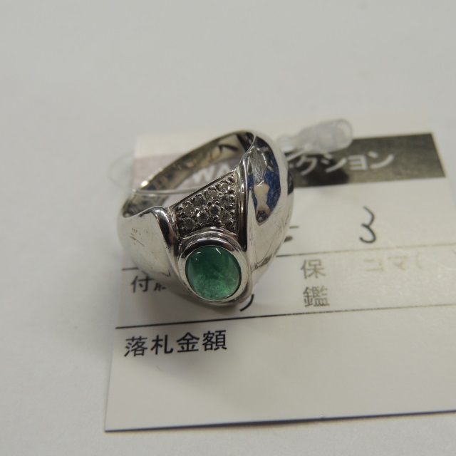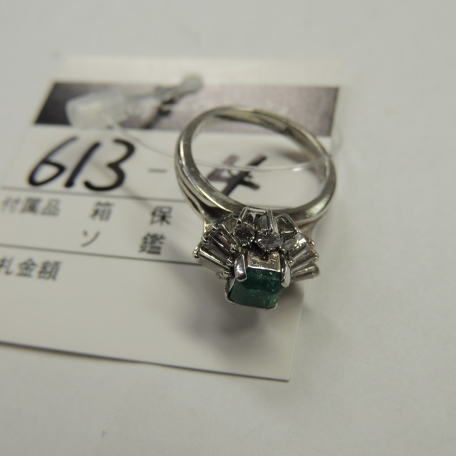 リング エメラルド ダイヤ Pt900 6.40g 鑑 石目:0.81 0.25