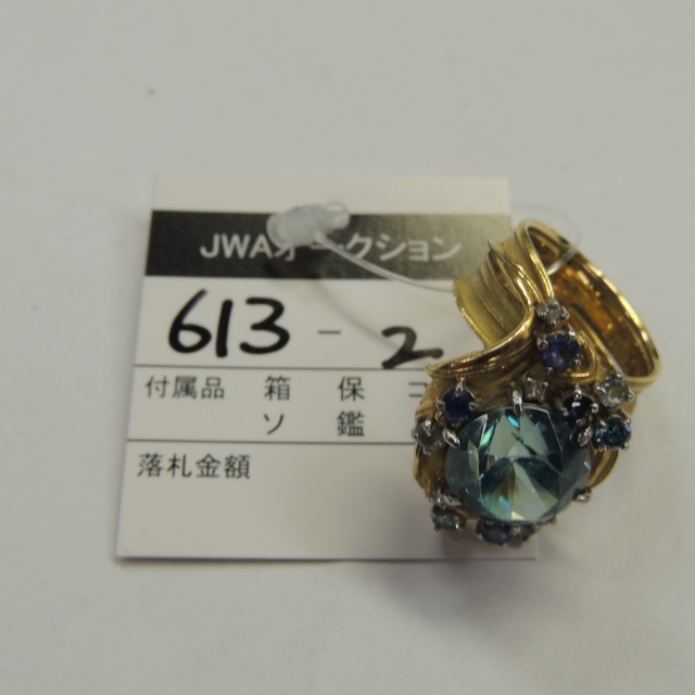 リング ジルコン ダイヤ サファイア アクア K18/Pt900 16.80g 石目:11.54 D0.32 S0.64 AQ0.17