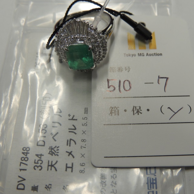 リング エメラルド ダイヤ Pt900 12.10g 石目:E3.09 D1.2