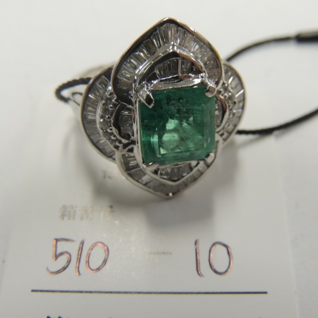 リング エメラルド ダイヤ Pt900 11.00g 中ソ 石目:E3.540 FD1.530