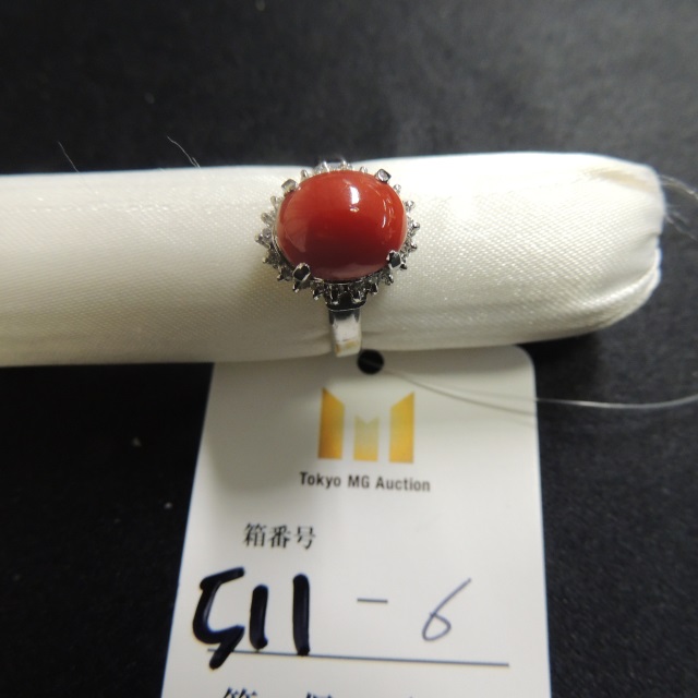 リング サンゴ ダイヤ Pt900 7.00g 石目:1.87 0.18
