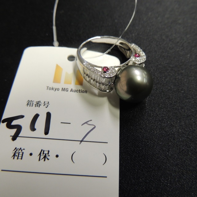 リング パール 11.7mm ダイヤ ルビー K18WG 7.60g 石目:0.13 0.80