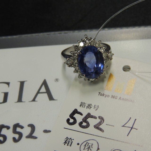 リング ブルーサファイヤ ダイヤ 非加熱スリランカ産 Pt900 8.80g GIA鑑 石目:6.32 0.64