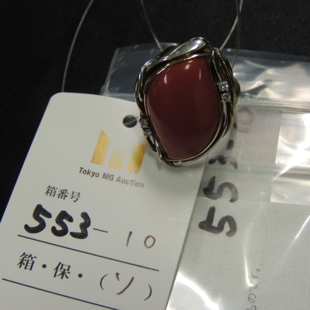 リング サンゴ ダイヤ Pt900/K18 13.00g 中ソ
