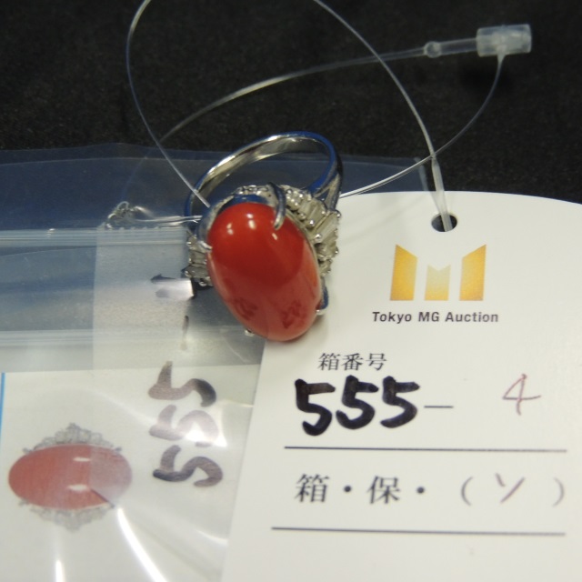 リング サンゴ ダイヤ Pt900 8.90g GRJソ 石目:9.46 D0.55