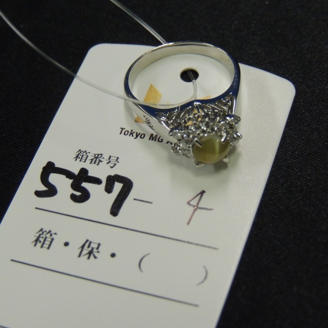 リング クリソベリルキャッツアイ ダイヤ Pt900 5.10g 石目:C0.78 D0.21
