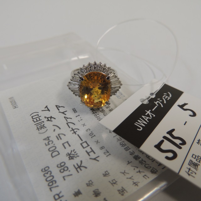 リング イエローサファイア ダイヤ Pt900 11.35g 鑑 中ソ 石目:7.86 0.54