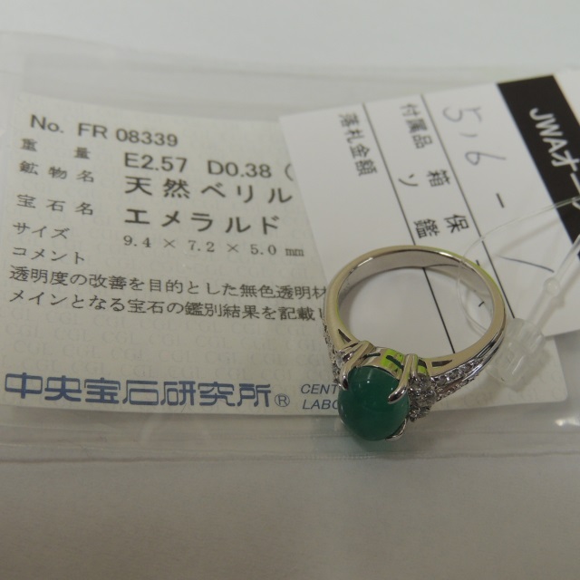リング エメラルド ダイヤ Pt900 7.00g 中ソ 石目:E2.57 D0.38