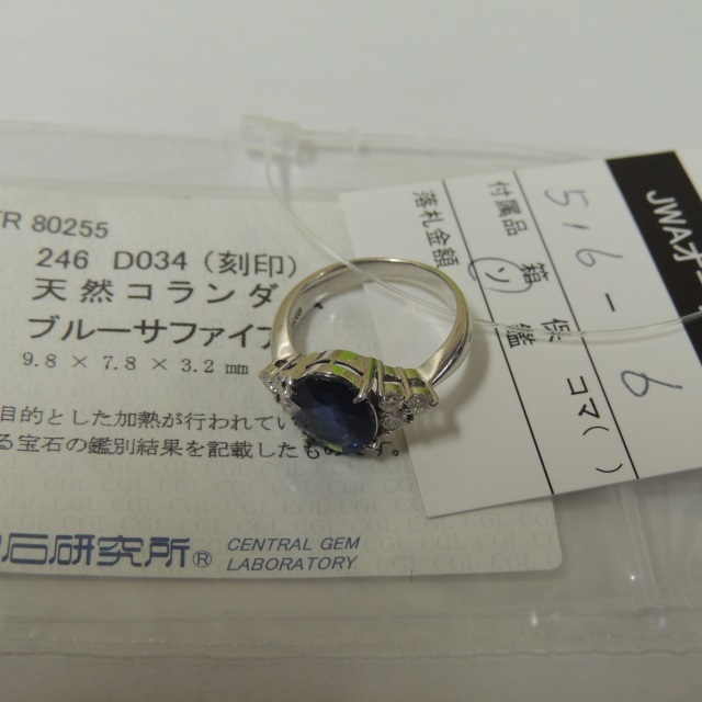 リング サファイヤ ダイヤ Pt900 5.30g 中ソ 石目:S2.46 D0.34