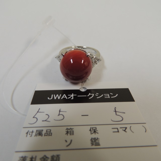 リング 赤珊瑚14mm ダイヤ PT900 13.20g