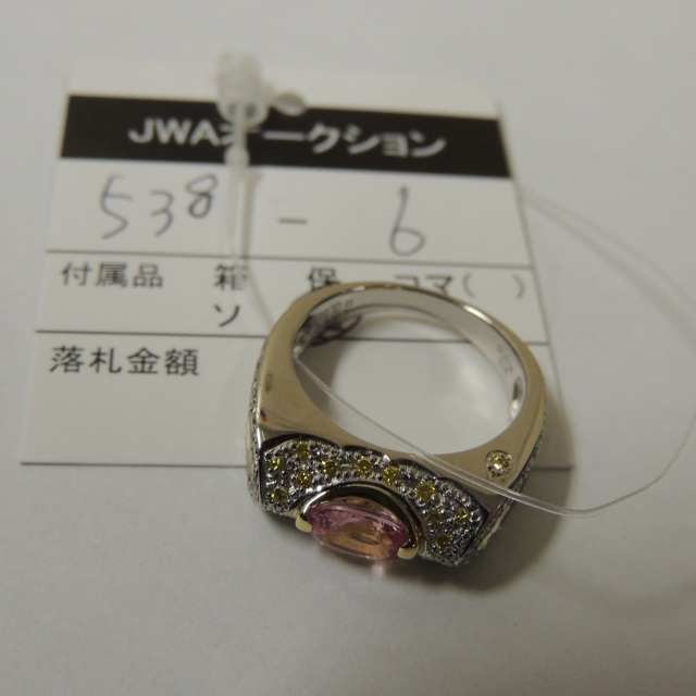 リング パパラチア ダイヤ K18/Pt900 9.10g 鑑 石目:0.965 D0.59