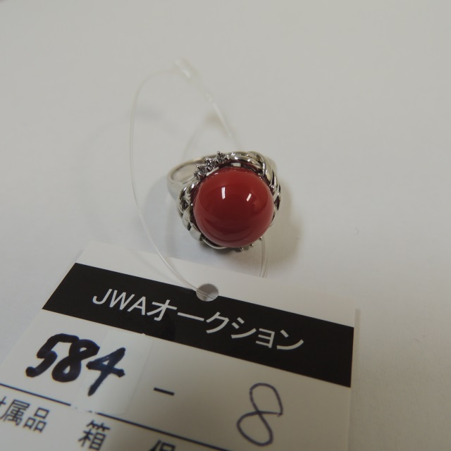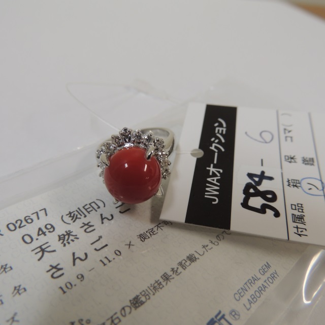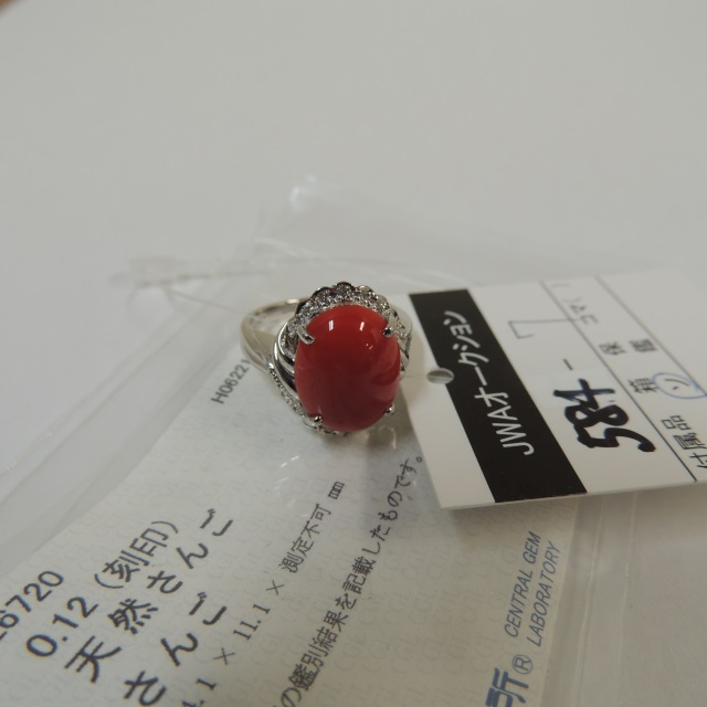リング サンゴ ダイヤ Pt900 18.60g 石目:8.086 D2.25