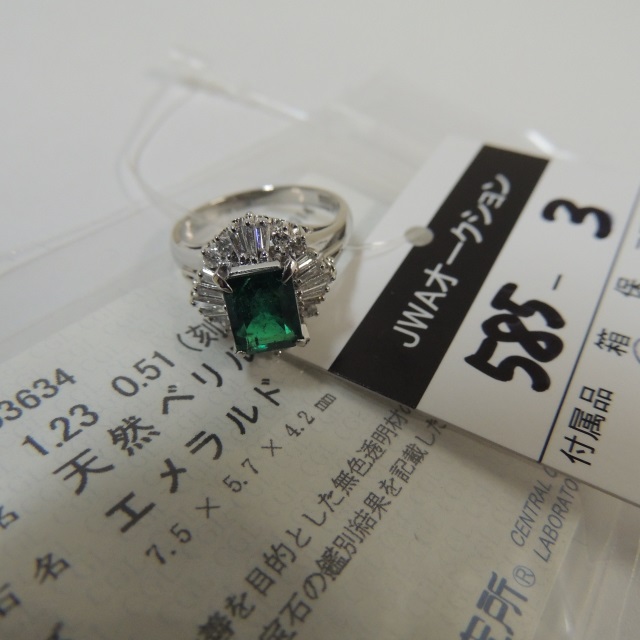 リング エメラウド ダイヤ Pt900 6.80g 中ソ 石目:E1.23 D0.51