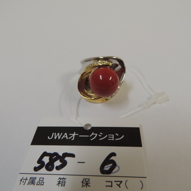 リング サンゴ ダイヤ K18/Pt900 15.10g 石目:15.19 D0.05