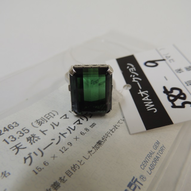 リング 緑石 ダイヤ Pt900 9.90g 石目:6.75 D0.786
