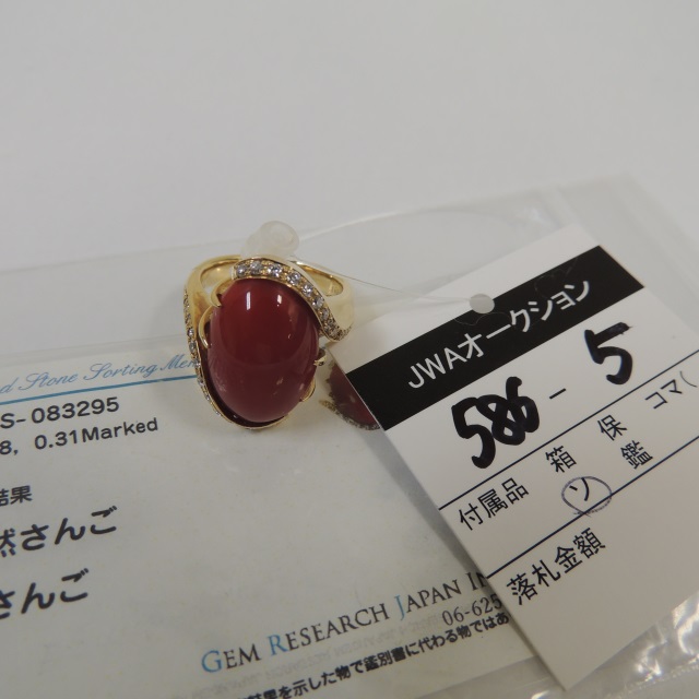 リング サンゴ ダイヤ K18 14.30g GRJソ 石目:10.28 D0.31