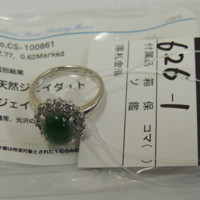 リング ヒスイ Pt900 8.50g GRJソ 石目:2.77 D0.62