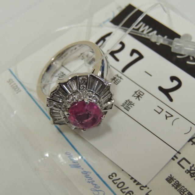 リング ピンクサファイア ダイヤ Pt900 13.20g GRJソ 石目:PS2.30 D1.24