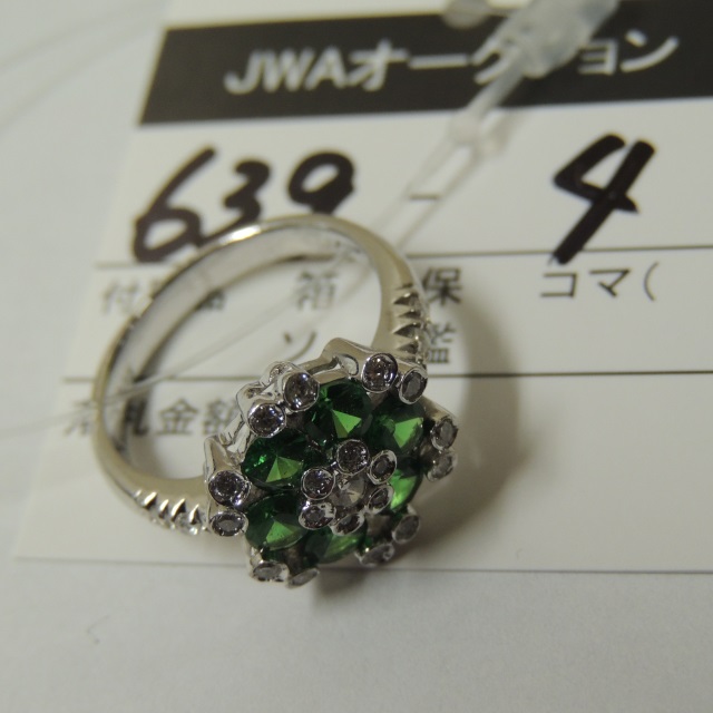 リング グリーンガーネット ダイヤ K18WG 5.40g 石目:1.08 D0.29