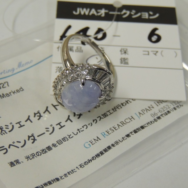 リング ラベンダーヒスイ ダイヤ Pt900 9.30g GRJソ 石目:4.56 D0.79
