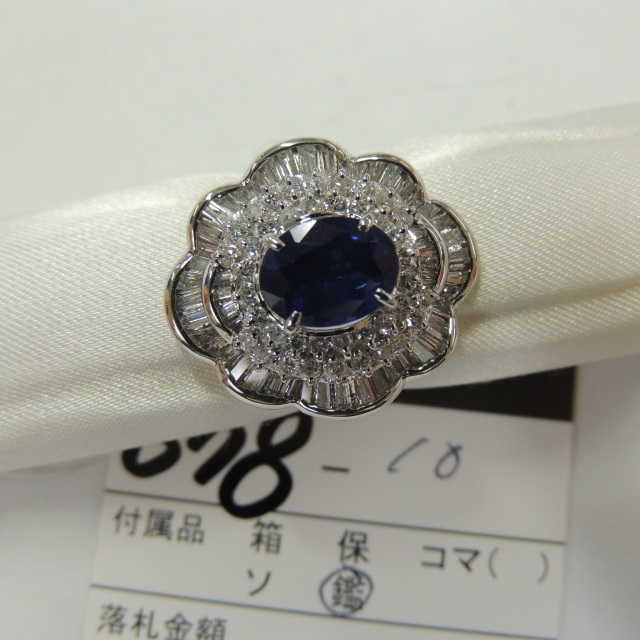リング サファイア Pt900 12.40g 中鑑 石目:S2.35 D1.51